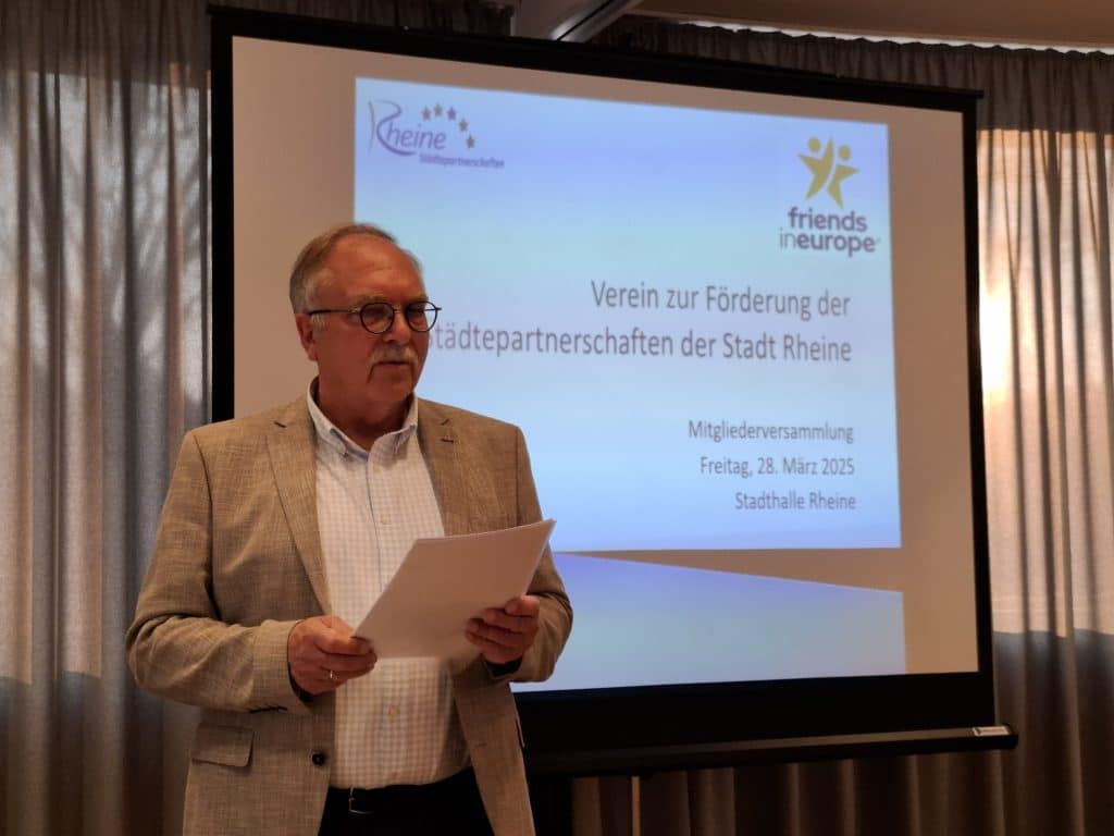 RHEINE. „Städtepartnerschaften sind so wichtig wie nie. In einer Welt, die zunehmend von Spannungen und Konflikten geprägt ist, bieten diese Partnerschaften einen Raum für Dialog und Zusammenarbeit. Sie ermöglichen es uns, über unsere Unterschiede hinwegzusehen und Gemeinsamkeiten zu entdecken, die uns Menschen verbinden“, sagte stellvertretender Bürgermeister Fabian Lenz in der Jahreshauptversammlung des Städtepartnerschaftsvereins Rheine. Zahlreiche Mitglieder hatten sich am Wochenende in der Stadthalle getroffen. Und Lenz dankte dem Verein im Namen des Rates der Stadt für sein Engagement: „Immer wieder tragen Sie mit ihrem Einsatz zum Gelingen unserer Städtepartnerschaften bei. So sind unsere Städte nicht nur formal miteinander verbunden, sondern auch emotional miteinander verwoben!“