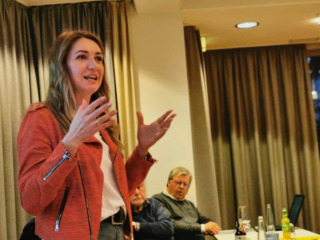 In eindringlichen Worten berichtete Irina Lebsack über die Situation in der Ukraine und untermauerte die Bedeutung der Hilfen gerade auch für die traumatisierten Kinder. „Die Kinder haben sich zu Weihnachten richtig gefreut“, berichtete sie von einer Hilfsaktion. Und: „Nein, der Krieg ist noch nicht vorbei – leider“, sagte sie zu den aktuellen Gesprächen auf der großen politischen Bühne. Als Dank für die Unterstützung aus Rheine hatten die Kinder kleine Friedensengel für die Teilnehmer der Mitgliederversammlung gebastelt. Das Sparschwein, das parallel durch die Tischreihen ging, war anschließend erneut gut gefüllt mit Spenden für die Ukraine.