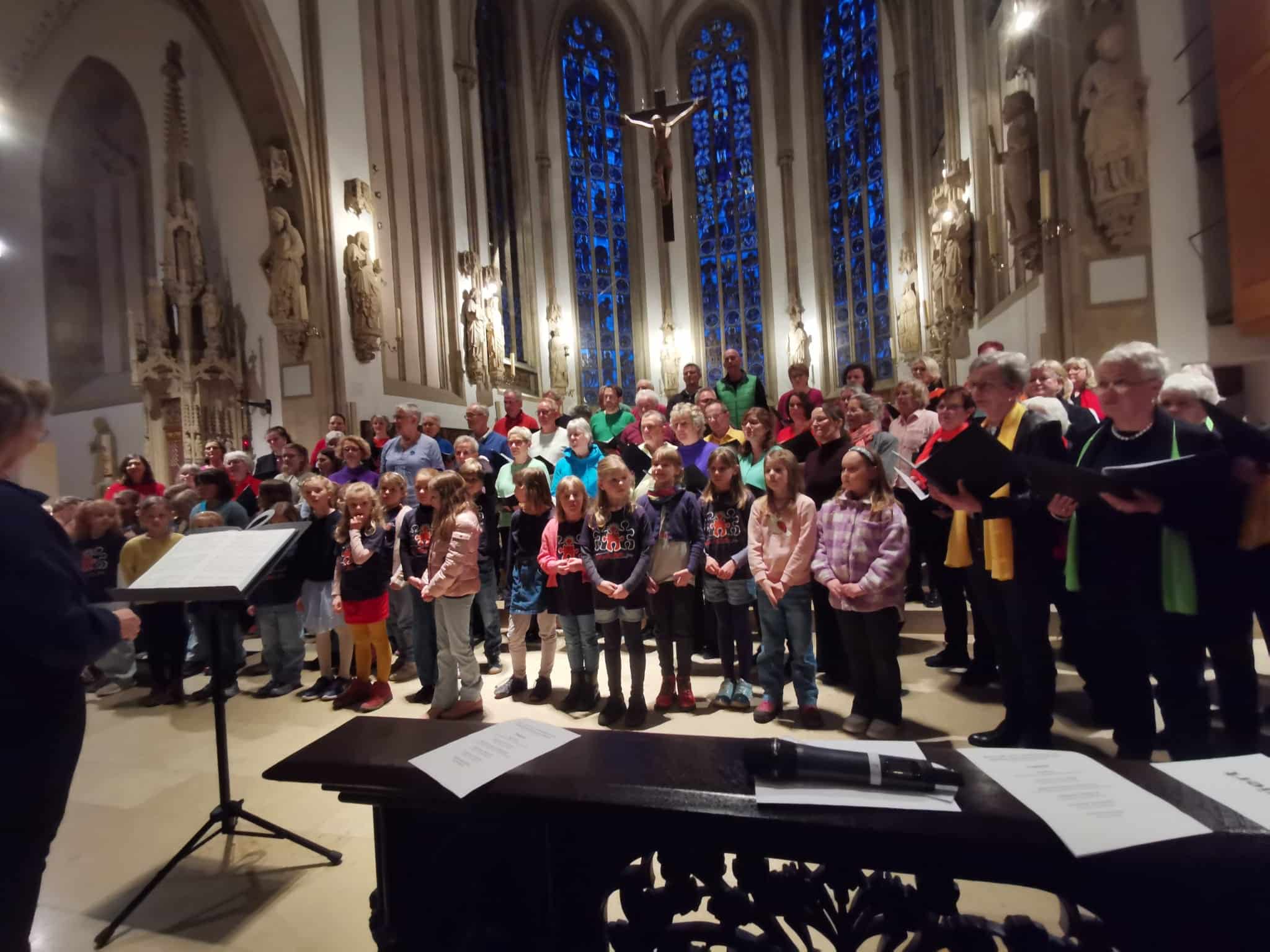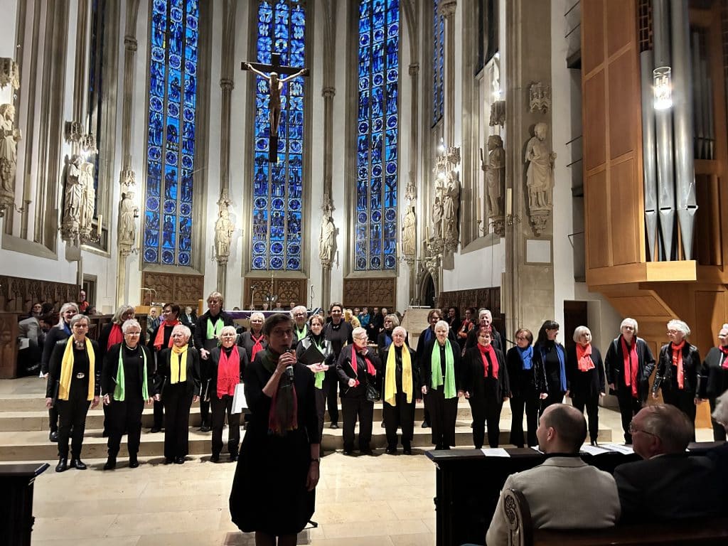 Deutlich spürte man die Inbrunst des gemischten Chores Soalbate, des Frauenchores Cantus Reni und der Folkgruppe „Ballyborne“, einen Beitrag gegen die Angst und Verunsicherung zu leisten, die spätestens seit dem Krieg im Iran eher gestiegen ist. Die Stimmung in der Stadtkirche war warmherzig und voller Mitgefühl für die schwer verwüstete Partnerstadt Leiria.