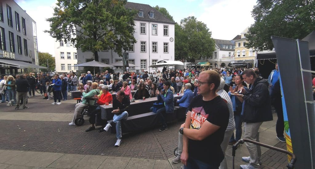 Het hoogtepunt was het optreden op het Borneplein, waar het stadskoor Bernburg ook het zondagprogramma van het straatfeest opende. Het brede repertoire bracht de vele bezoekers, die waren neergestreken en een uur lang werden vermaakt, in vervoering. Koorleider Ronny Strübing slaagde erin om het publiek mee te laten zingen en mee te laten doen met zijn charismatische stijl. Burgemeester Peter Lüttmann, die even pauzeerde van het verkiezingsproces, en Jan-Christoph Tonigs, hoofd van Stadscultuur, waren ook zichtbaar onder de indruk. “Ik was vooral onder de indruk van de enorme energie van het koor en de koorleider. Vocaal waren ze ook erg goed en de mix van oudere en verrassend veel jonge stemmen harmonieerde met het brede repertoire dat werd gezongen,” zei Tonigs na afloop. Hij zou het erg op prijs stellen om in de toekomst gezamenlijke programma’s te maken met een van de toegewijde koren van Rheine of een projectkoor van een zusterstad. “We zullen deze gesprekken voeren bij de volgende gelegenheid,” kondigde Reiner Wellmann, voorzitter van de stedenbandvereniging Rheine, tot besluit aan. www.friendsineurope.com